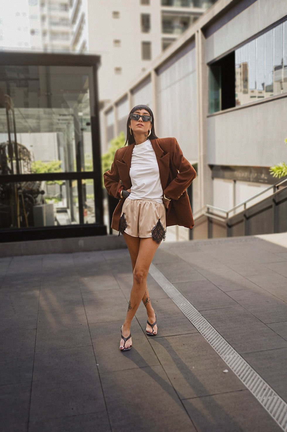 Shortinho de Cetim com Renda Chantily